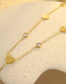 Delicate and romantic, the 18K Gold-Plated Heart Zircon Necklace adds effortless elegance to any look. Featuring dainty heart accents and sparkling zircon details, this refined piece drapes beautifully along the neckline. Perfect for layering or wearing solo, it brings a soft, feminine charm to both everyday and special-occasion styling.