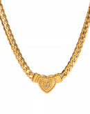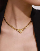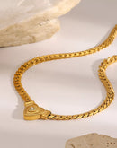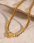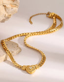 Bold yet romantic, the 18K Gold-Plated Zircon Heart Necklace is designed to make a statement. Featuring a sleek chain paired with a polished heart pendant accented by sparkling zircon, this piece blends modern edge with timeless elegance. Perfect for elevating everyday looks or adding shine to evening outfits.