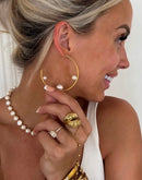 The Statement Hoop is bold, timeless, and effortlessly wearable. Designed to elevate everyday looks and special occasions alike, these pearl-accented hoops strike the perfect balance between classic elegance and modern edge. A true jewelry-box staple you’ll keep reaching for, day after day.