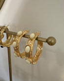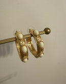 Elegant and chic, these earrings feature a radiant gold finish, beautifully accented by lustrous white stones. They are the perfect touch of sophistication to elevate any look, offering both style and timeless appeal.