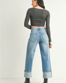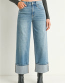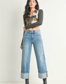These cuffed slim wide jeans deliver effortless style with a flattering, easygoing fit. Designed to feel polished yet relaxed, they’re a boutique-ready staple that transitions seamlessly from casual days to dressed-up looks with boots, sneakers, or heels.