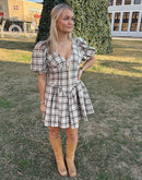 The Sierra Dress is the perfect fall statement piece with timeless charm. Designed with a flattering silhouette, soft neutral tones, and feminine details, this boutique dress is ideal for Thanksgiving gatherings, seasonal celebrations, and effortless autumn styling.