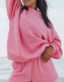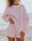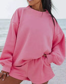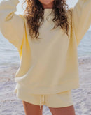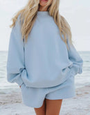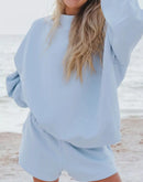 Relaxed Fit Round Neck Sweatshirt and Shorts Set