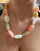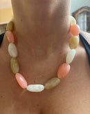 - Cream, Light Pink, and Brown Stone Necklace