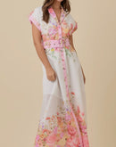 - Floral Print Lapel Collar Button Down Maxi Dress