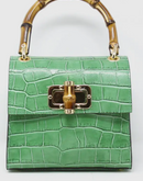 - Kelly Green Genuine Italian Leather Bamboo Handle Bag
