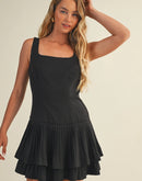 The Lauren Layered Pleated Dress is effortlessly elegant with a playful boutique touch. Designed with a flattering square neckline and softly layered pleats, this dress moves beautifully and feels comfortable, making it perfect for special occasions or elevated everyday styling.