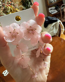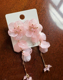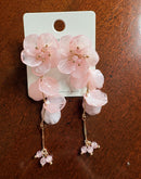 Embrace the enchantment of the Petal Whispers Earrings. These exquisite earrings are designed to capture the essence of spring with their ethereal beauty. Delicate, translucent pink flower petals cascade gracefully, creating a light and airy feel. Each earring is further adorned with clusters of petite, shimmering beads, adding a touch of sparkle. With their delicate design and romantic charm, these earrings are perfect for adding a touch of whimsy and elegance to your look, whether for a special occasion or everyday wear.