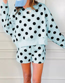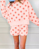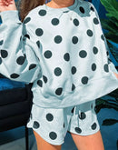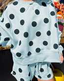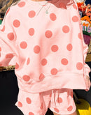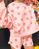 - Polka Dot Print Drop Shoulder Pullover Drawstring Shorts Set