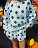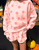 Relaxed, playful, and effortlessly cute, this polka dot two-piece set is perfect for laid-back days with style. Featuring a cozy drop-shoulder pullover paired with matching drawstring shorts, it offers a comfy fit with a fun, boutique-worthy look. Ideal for lounging, casual outings, or weekend wear.