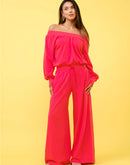 Step into comfort and style with this French Terry Off Shoulder Jumpsuit. The soft, stretchy fabric and relaxed fit create the perfect blend of laid-back elegance, making it ideal for any casual outing. With its flattering off-shoulder design and vibrant color, it’s a must-have for every fashion-forward wardrobe.