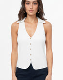 Tatiana Button Front Collared Knit Vest