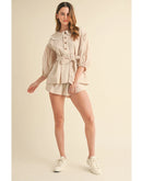 The Caroline button-down blouse and shorts set is a charming blend of classic elegance and modern ease. Thoughtful details and a flattering silhouette create a polished yet comfortable look, making this boutique set perfect for daytime outings or dressed-up casual moments.