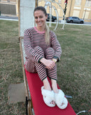 So incredibly soft and effortlessly cozy, the Crew Neck Stripe Sweater & Wide Leg Pants Set is a standout seasonal favorite. Featuring eye-catching stripes, this matching sweater set blends comfort and style, making it perfect for lounging, casual days, or relaxed outings.