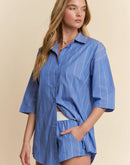 This striped matching set is the definition of effortless chic. Featuring a relaxed button-down shirt paired with coordinating shorts, it delivers a polished yet laid-back look that feels comfortable and stylish, perfect for warm days, travel, or easy everyday wear.