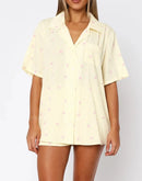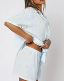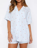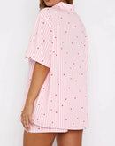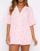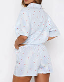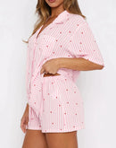 Valentine's Day Printed Collared Neck Short Sleeve Top and Shorts Set