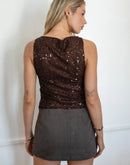 Shine with elegance in the High Boat Neckline Sheer Sequin Tank Top. Designed with a sleek, sleeveless silhouette, this top is adorned with allover sheer sequins for a shimmering finish. The high boat neckline adds a sophisticated touch, while the lightweight mesh construction ensures comfort and breathability.