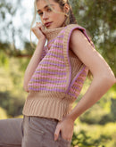 This trendy mock neck sweater vest is the perfect balance of cozy and stylish. With its ribbed texture and contrast stitching, it adds a playful twist to any outfit. The semi-cropped fit and scalloped cap sleeves make it an easy-to-wear, statement piece for any season.