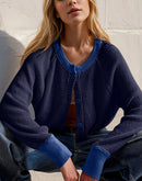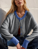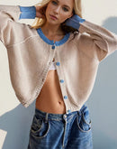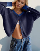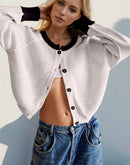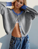 - Double Take Contrast Button Up Long Sleeve Cardigan
