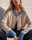 Double Take Contrast Button Up Long Sleeve Cardigan