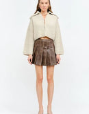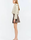 - Cropped silhouette designed to complement high-rise skirts or denim