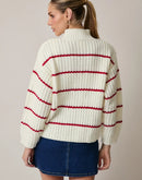 - Mock Neck Long Sleeve Stripe Chunky Slouchy Sweater Cardigan