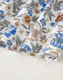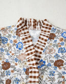 - Designed with a floral print and plaid frilled trim for added texture and contrast