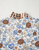 - Plaid Frilled Trim V Neck Floral Long Sleeve Blouse