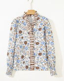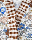 Plaid Frilled Trim V Neck Floral Long Sleeve Blouse