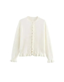 The Ruffle Wave Button Knit Cardigan adds a delightful touch to your wardrobe. With its charming ruffle wave details and button-up design, this cardigan combines elegance and comfort. A perfect layering piece, it offers a soft, feminine look for any casual or dressed-up occasion.