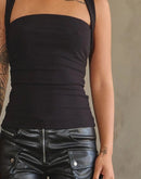 - Square Neck Jersey Sleeveless Top with Side Ruching