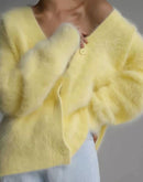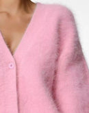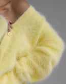Wrap yourself in cozy elegance with the V-Neck Button-Down Cardigan. Made from soft, fluffy polyester fabric, this cardigan offers a luxurious feel with its relaxed fit and the oversized sleeves provide comfort and warmth. Perfect for layering over your favorite outfits, this cardigan is a versatile addition to your cool-weather wardrobe.
