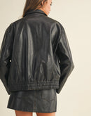 Washed Leather Zip Up Jacket