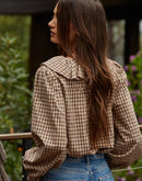 Woven Cotton Gingham Ruffled Blouse