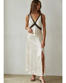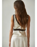 - Woven Satin Contrast Lace Trim Detail Sleeveless Top