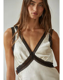 Woven Satin Contrast Lace Trim Detail Sleeveless Top