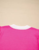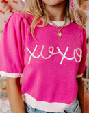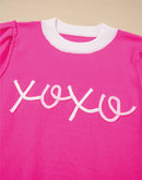 XOXO Valentines Contrast Trim Crew Neck Short Sleeve Sweater