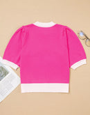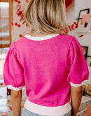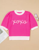 - XOXO Valentines Contrast Trim Crew Neck Short Sleeve Sweater