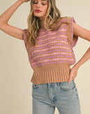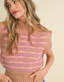 This trendy mock neck sweater vest is the perfect balance of cozy and stylish. With its ribbed texture and contrast stitching, it adds a playful twist to any outfit. The semi-cropped fit and scalloped cap sleeves make it an easy-to-wear, statement piece for any season.