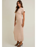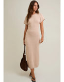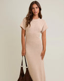 Effortlessly refined, the Round Neck Short Sleeve Sweater Midi Dress offers a perfect balance of comfort and elegance. Designed in a soft knit with a streamlined midi length, this dress creates a flattering silhouette that transitions seamlessly from casual daytime wear to polished evening styling.